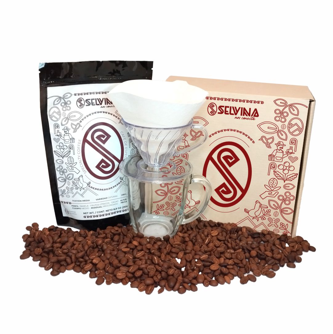 Ármate con el mejor Kit de Hario: V60 #2 en acrílico, bolsa de café de especialidad Selvina. La V60 es uno de los métodos preferidos por los baristas, ya que permite obtener tazas mucho más complejas gracias a su diseño de estrías internas que proporción mayor fluidez del agua.