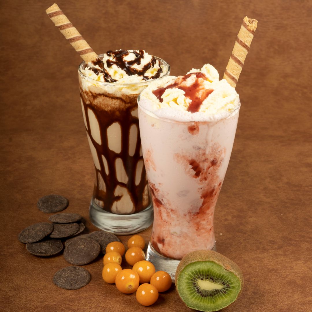 Bebida fría y refrescante, batida y mezclada, típicamente elaborada con sabores a chocolate, vainilla o frutos rojos, helado, galletas, crema chantilly