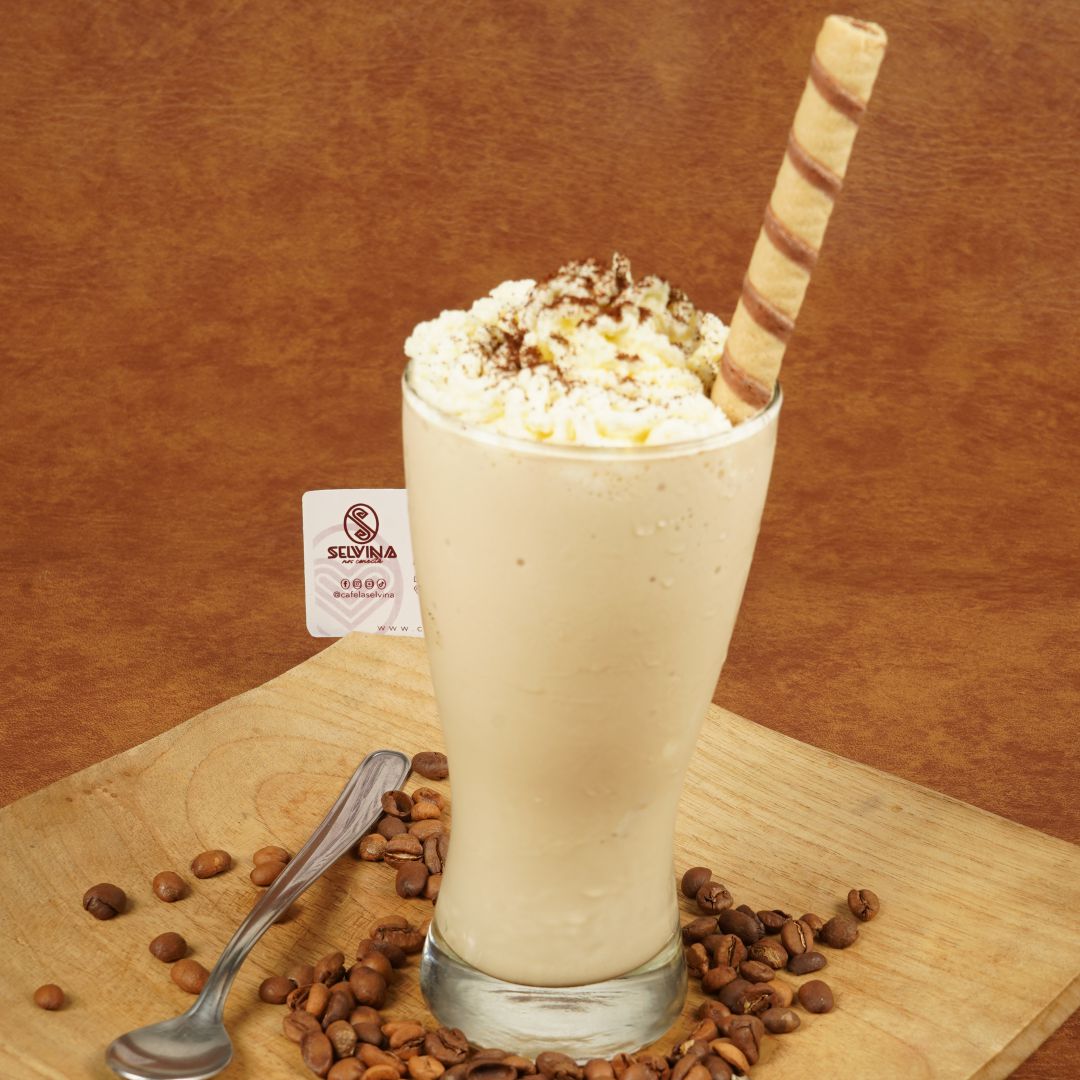 Bebida fría y refrescante, batida y mezclada, típicamente elaborada con café espresso, helado, galletas, crema chantilly y jarabes de sabor